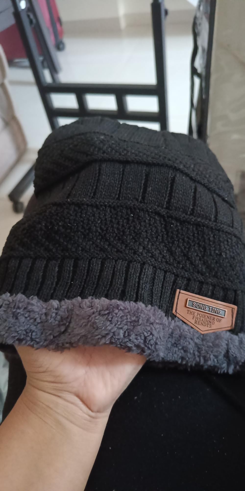 A: Haan, stretchable wool + fleece fabric free size hai — fits most heads comfortably 😎